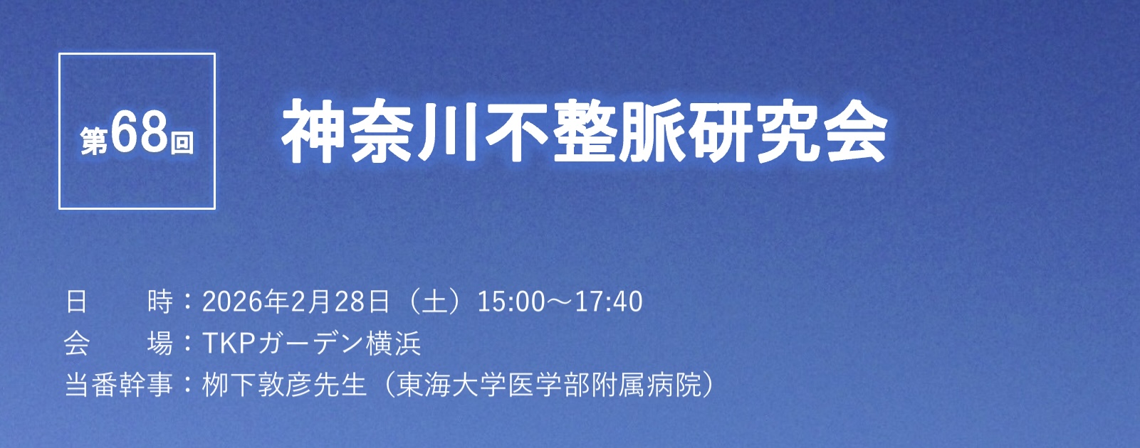 日 時:2026年2月28日(土)15:00~17:40 当番幹事:栁下敦彦先生(東海大学医学部附属病院) 会 場:TKPガーデン横浜
